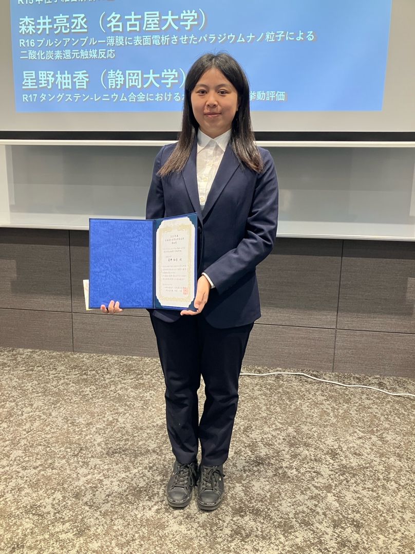 星野柚香さん(創造科学技術大学院〔博士課程〕1年、環境・エネルギーシステム専攻)が12月16、17日に行われた第57回日本原子力学会中部支部研究発表会において奨励賞を受賞しました。